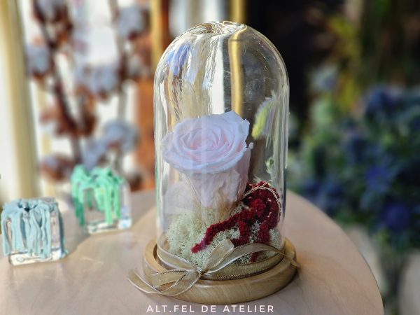 Aranjament realizat din flori conservate/criogenate sau uscate şi plante naturale stabilizate (muşchi, licheni ş.a.). Potrivite atât pentru spaţiile de birouri cât şi pentru acasă.