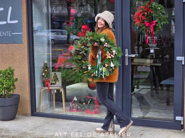 Coronita de Craciun este realizata cu crengi de brad natural, accesorizata cu figurine, globuri si alte accesorii specifice sezonului rece.