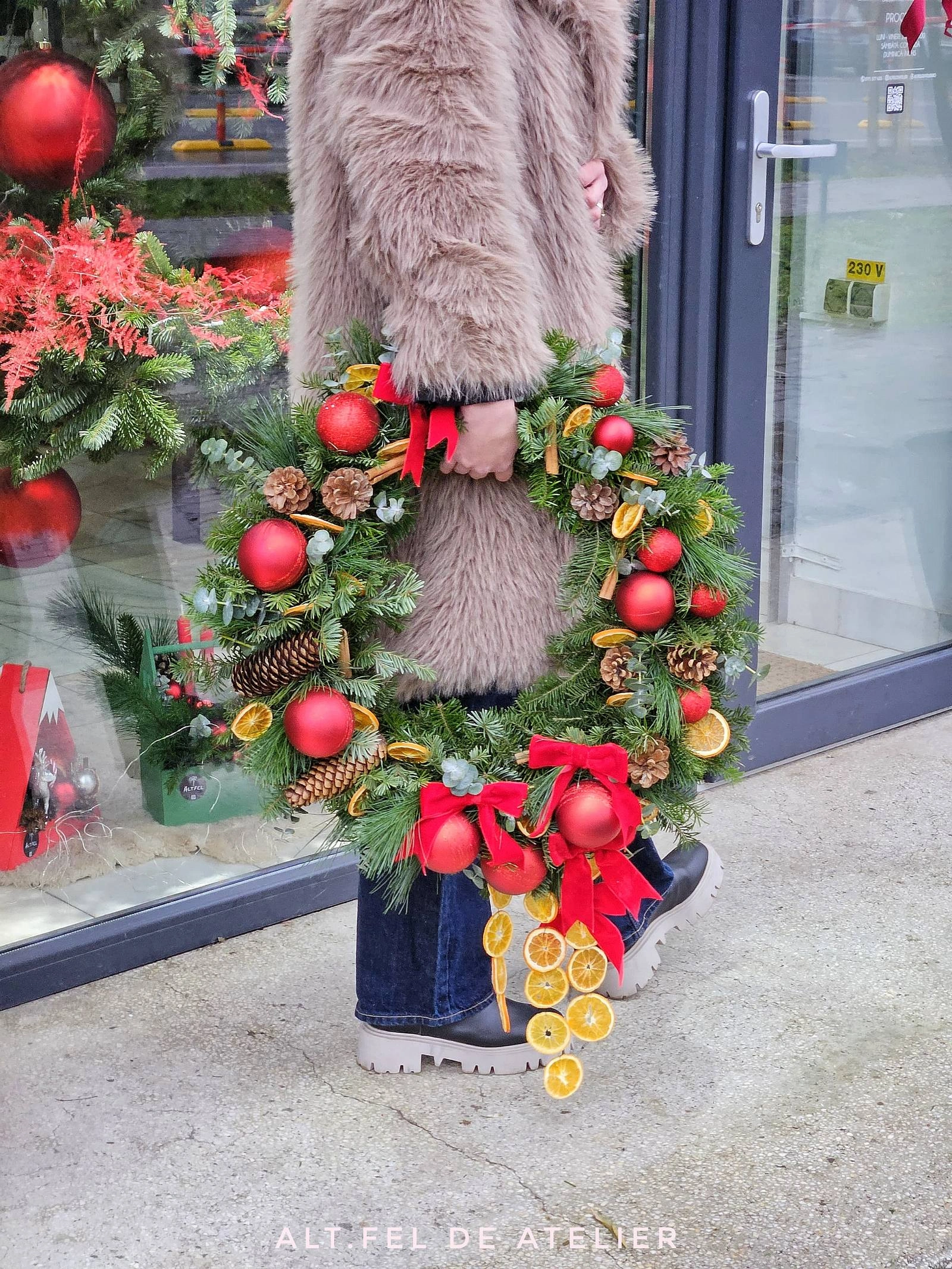 Coronita de Craciun este realizata cu crengi de brad natural, accesorizata cu figurine, globuri si alte accesorii specifice sezonului rece.