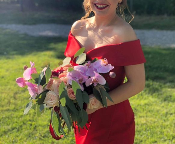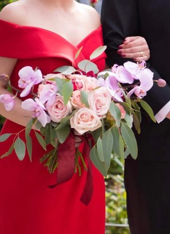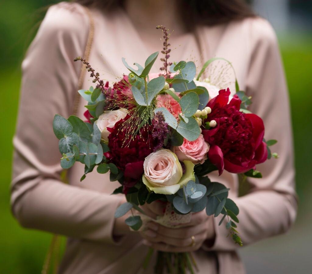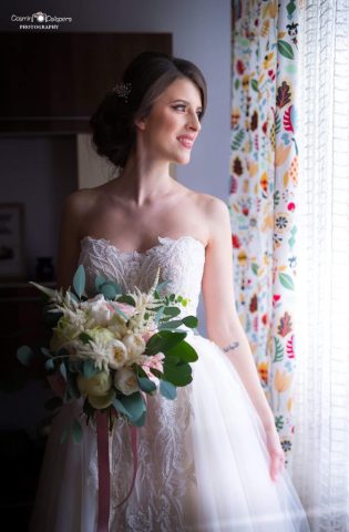 Andreea şi Cristi au ales să îşi unească destintele într-o călduroasă şi “îmbujorată” zi de mai. Andreea iubeşte mirosul dulce-amar al bujorilor, buchetul de cununie civilă а fost în nuanţe de burgundy şi roz pastel, iar pentru buchetul de mireasă am ales nuanţe calde de piersică, crem, alb, roz pastel şi verdele- argintiu al eucaliptului.